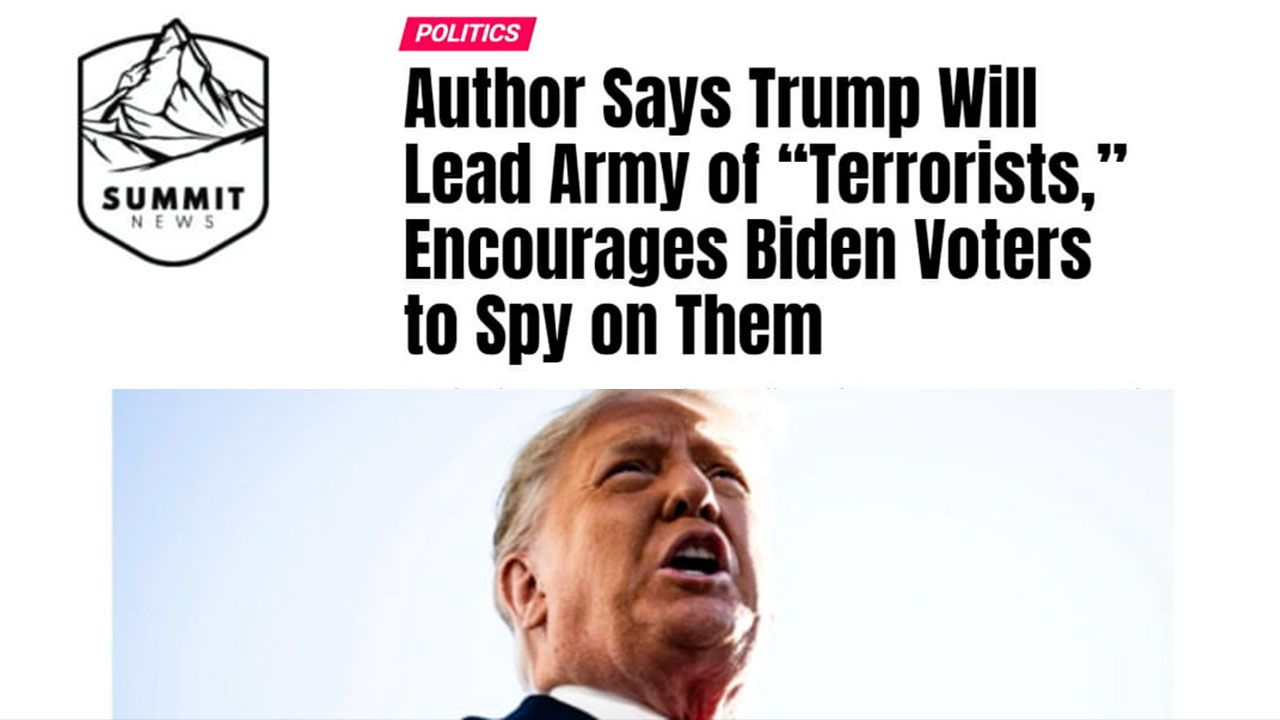A viral video posted to Twitter by a best-selling author says Trump plans to lead an army of “domestic terrorists” and encourages Joe Biden voters to spy on their activity and report them to authorities.