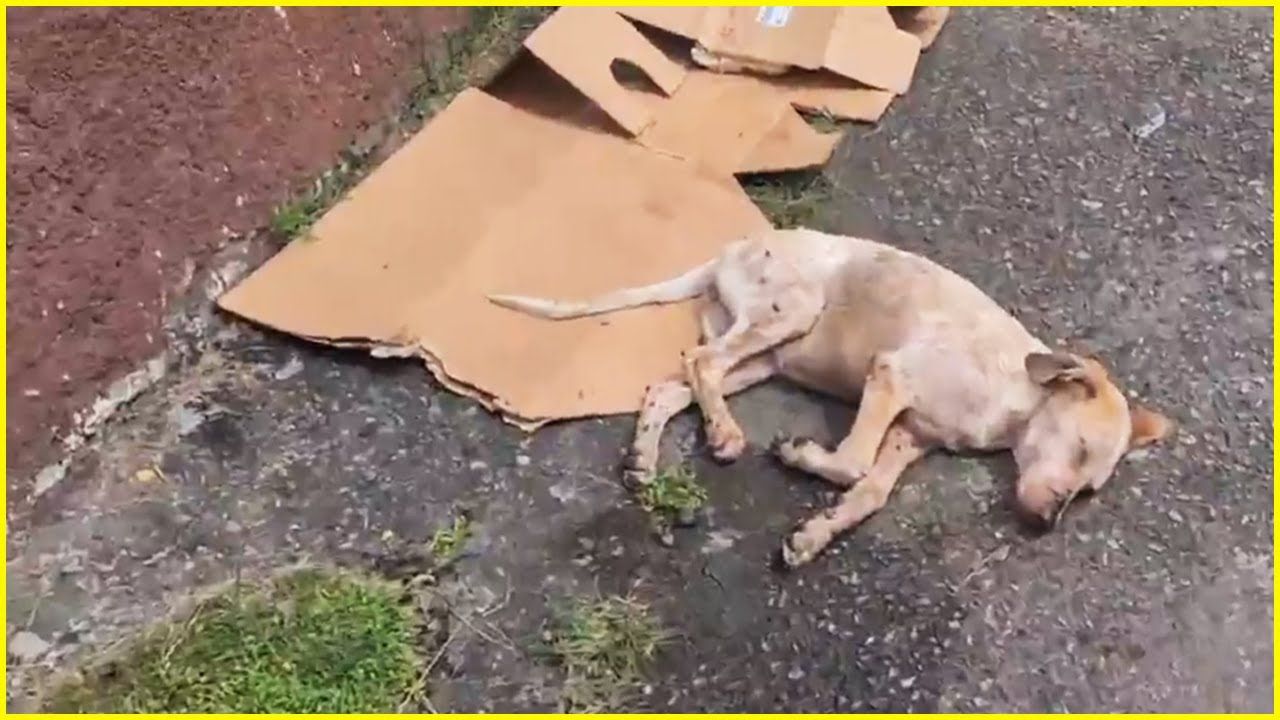 a dog named Trier lay on the side of the road, a silent testament to the cruelty that life can sometimes hold. Someone had placed him on a makeshift bed of cardboard, as if hoping the world would pass him by unnoticed. Trier, with his fur matted and eyes dim, was a fragile soul on the verge of surrender.