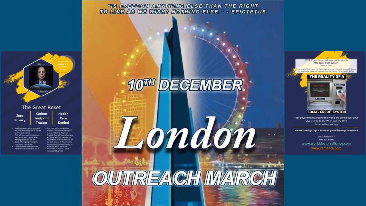Saturday 10th December 2022 freedom outreach march meeting at Trafalgar Square. Main outreach of this one about the implications of digital cashless society.