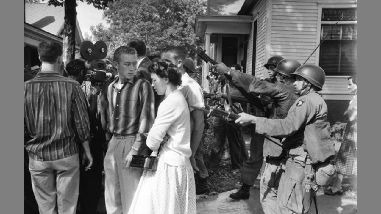 Literal gun-and-bayonet point.