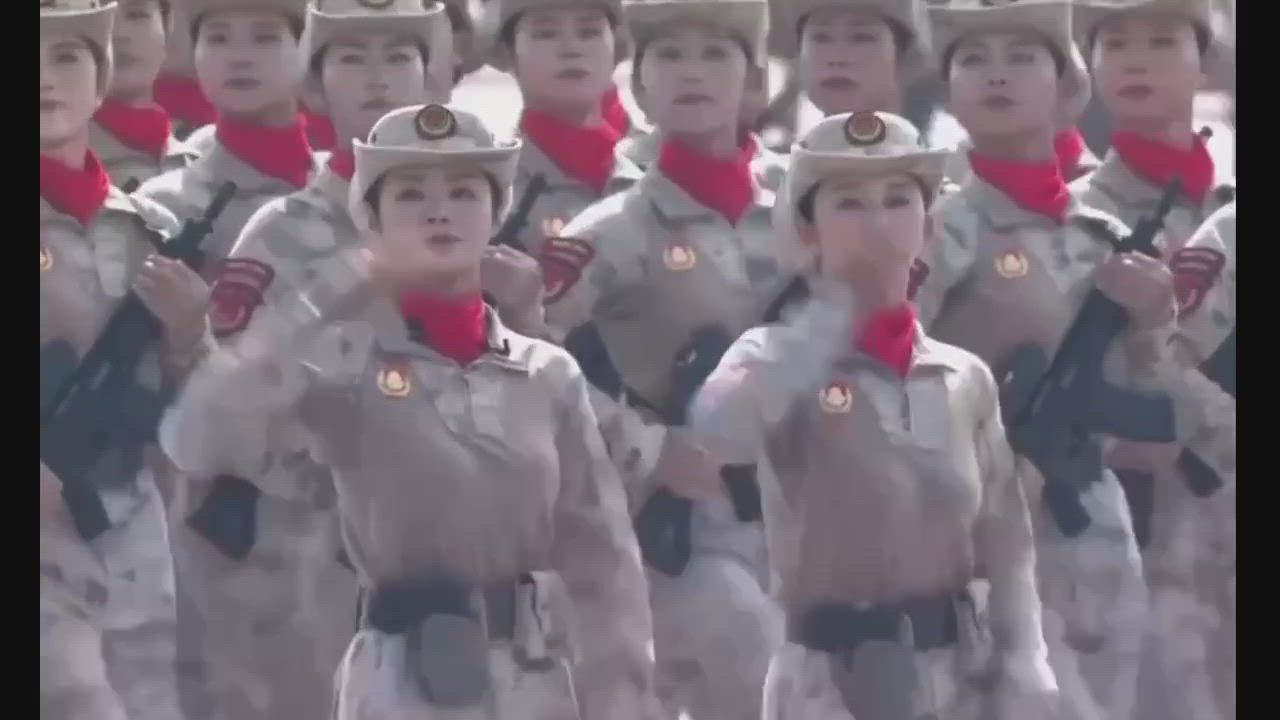 Chinese Women Soldiers marching in formation.