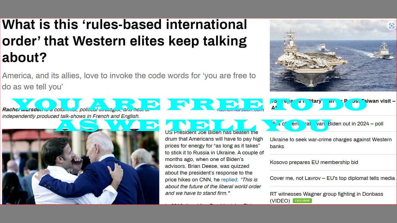 "YOU ARE FREE TO DO AS WE TELL YOU" CALL FOR AN AWAKENING~! "SOONER THAN YOU THINK" LOOK FOR A TRUMP RETURN IN EARLY 2023 GOING TO BE EPIC~!https://www.rt.com/russia/558490-liberal-world-order-explained/