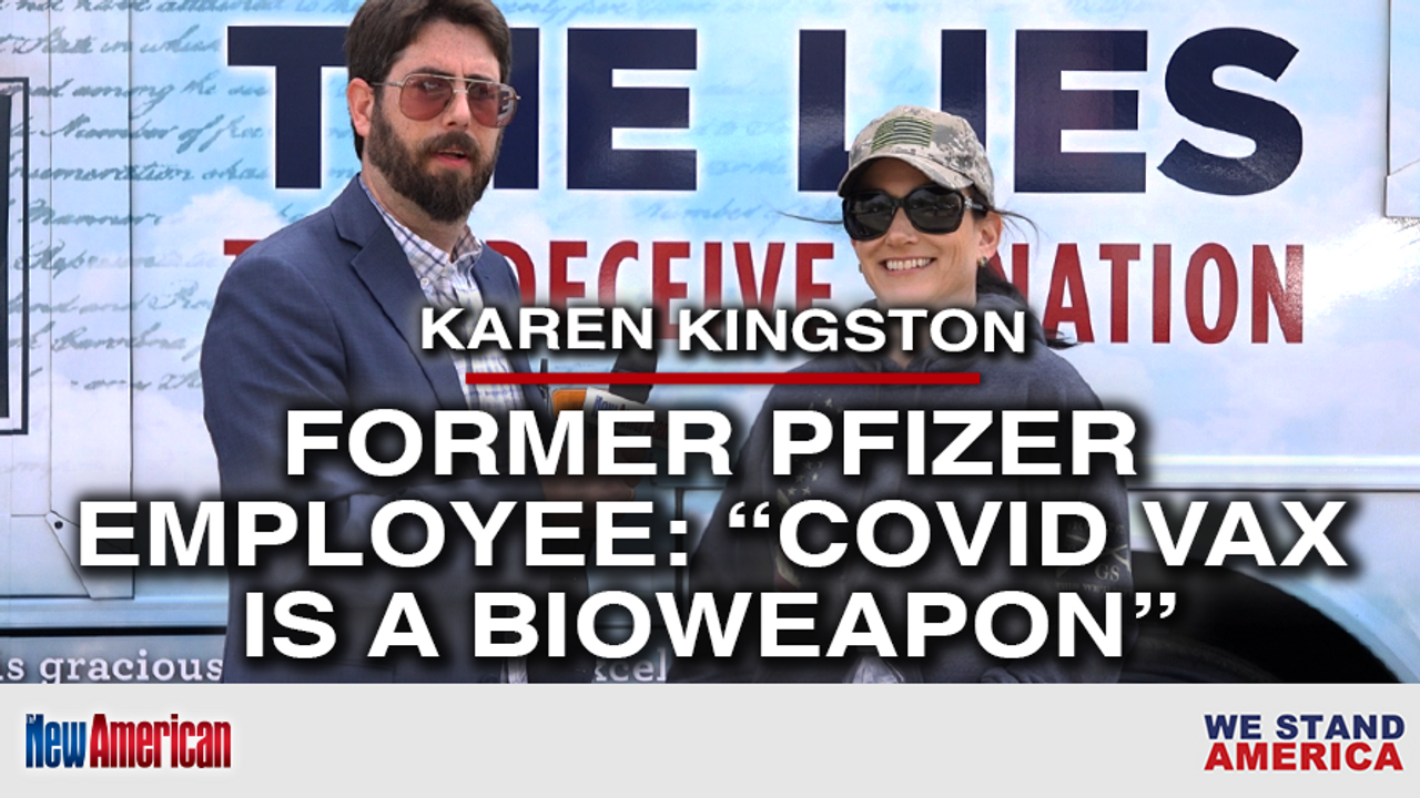 Former Pfizer employee and current biotech analyst Karen Kingston joined Alex Newman, senior editor for The New American magazine, at the We Stand America event on the Texas border with Mexico. She asserted that pharmaceutical companies have conspired with countries that are enemies of America to develop both viruses and vaccines that are bioweapons. She added Americans need to recognize this attack on America and our posterity, speak the truth boldly, and then get back to our foundational truths, such as the Constitution. The national security threat is not a virus, it’s the mandates and inoculations.