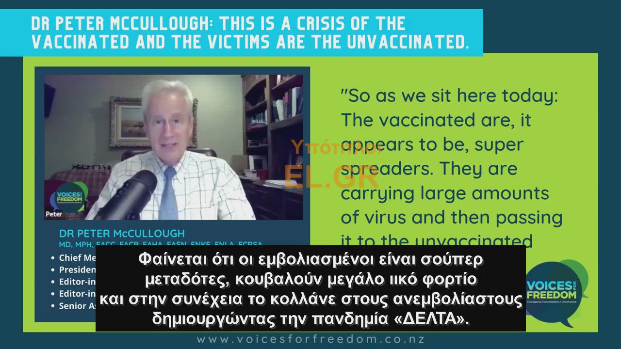 Dr Peter McCullough - Αυτή είναι μια κρίση των εμβολιασμένων και τα θύματα είναι οι ανεμβολίαστοι