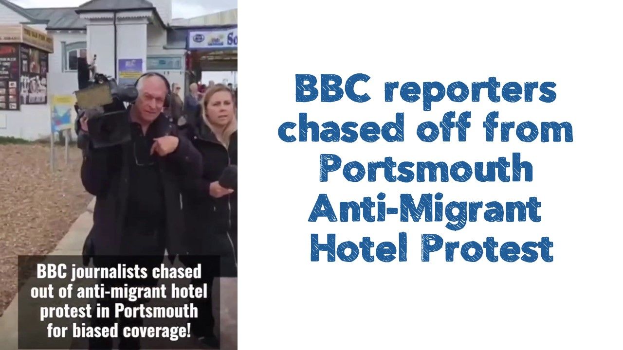 BBC reporters chased off from Portsmouth Anti-Migrant Hotel Protest. Play Up Pompey!