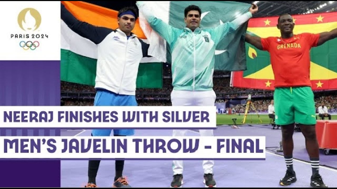 Neeraj Chopra of India secured silver in the men’s javelin throw at the Paris 2024 Olympics. Pakistan's Arshad Nadeem won gold with an Olympic record throw of 92.97m and Anderson Peters of Grenada earned bronze.