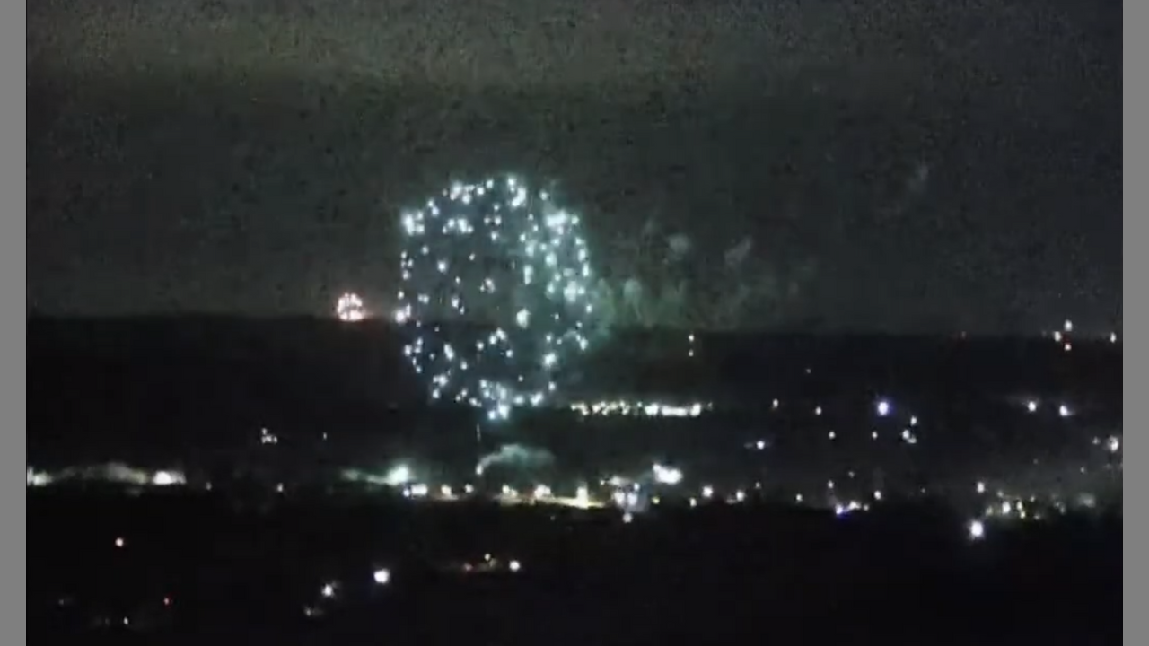 The closest town (4 miles) starts their display at 22:03 on the screen clock. There are many towers with flashing lights, but tonight there are numerous fireworks displays. The displays out farther into the hills are individuals that enjoy fireworks on the 4th. The best part is the echo of the explosions against the hills. Unfortunately, this has no audio.