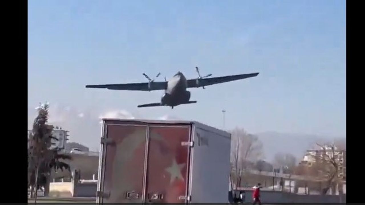 A Turkish C-160 military cargo plane makes an emergency landing immediately after the take off due to malfunctioning.