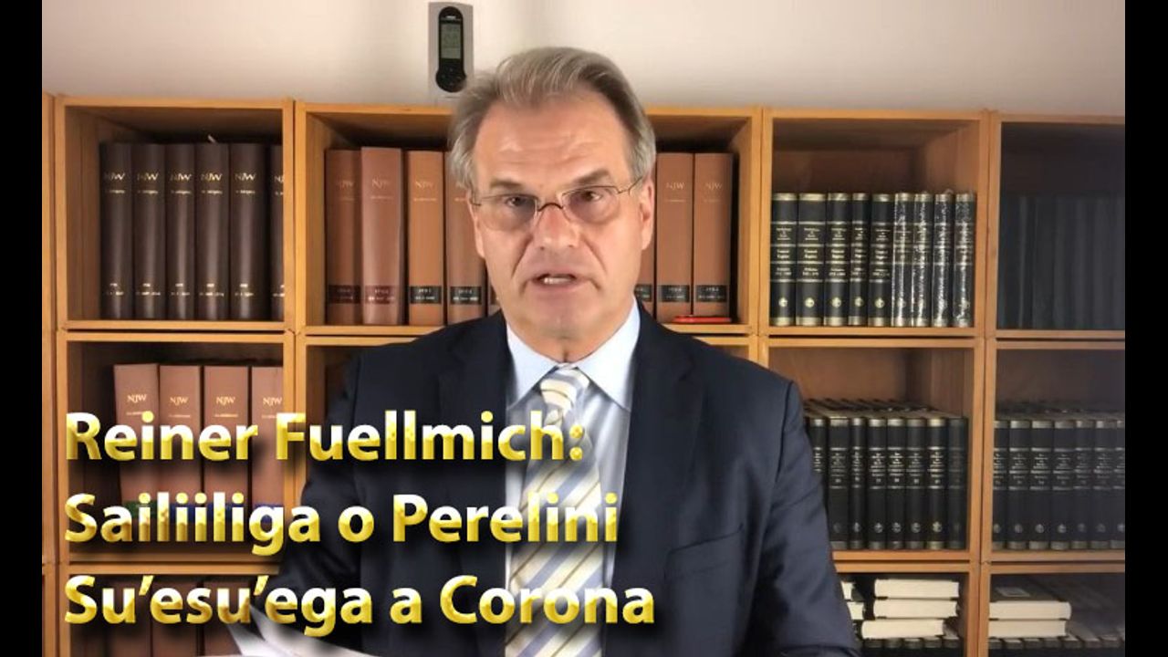 Dr. Reiner Fuellmich, o se loia poto masani faʻataʻitaʻi laiseneina i Siamani ma Kalefonia (USA) ma co-faavaeina o le Corona Investigative Komiti. I lenei vitio na ia aoteleina ai sailiiliga a le Komiti i le taimi nei ma iloiloina le tulaga o loʻo i ai nei. "Ana fai na taʻuina mai ia te aʻu lenei mea i le tausaga talu ai, semanu ou te le manatu e mafai. O lenei, ina ua maeʻa ona fesiligia le selau ma selau o tagata atamamai, e manino lava e aunoa ma se masalosalo ma mafai ona faʻamaonia: e leai se taimi e faatatau i le soifua maloloina." (Vitio 40 mins, subtitles Samoa)