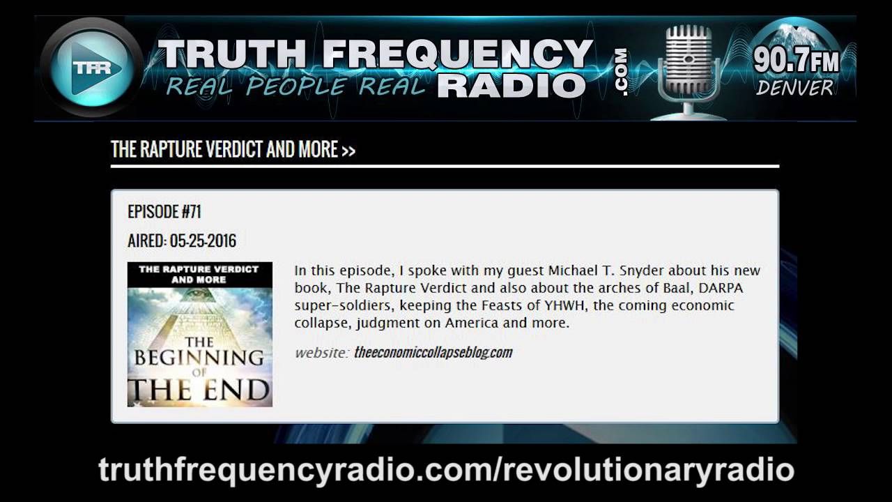 [Aug 9, 2016] TFR 71 - Revolutionary Radio with Michael Snyder: The Rapture Verdict (and more) (8.9K views on YouTube)