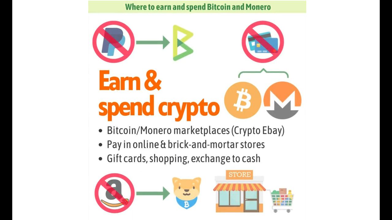 Live freely with Bitcoin and Monero. Earn crypto online or accept it in your business, and spend crypto at crypto-friendly businesses, buy gift cards for mainstream stores, or withdraw it to physical cash. No bank account, government ID or state permit is required.