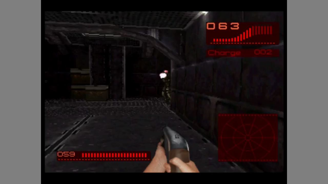 Beware of the dog strain. Alien Trilogy is first person shooter based on the (at this time) three Alien movies. It was developed by British company Probe Entertainment and published by Acclaim. The game came also out for PC and for the Playstation. You play the heroine of the saga, Alan Ripley, and start off at the colony from the film Aliens. Later levels take place at locations from the other two movies. The levels of the game are missions which come with an objective each, like taking out all enemies or activating power sources. Enemies in the game are taken from the movies, like Facehuggers, infected colonists and the original Alien.