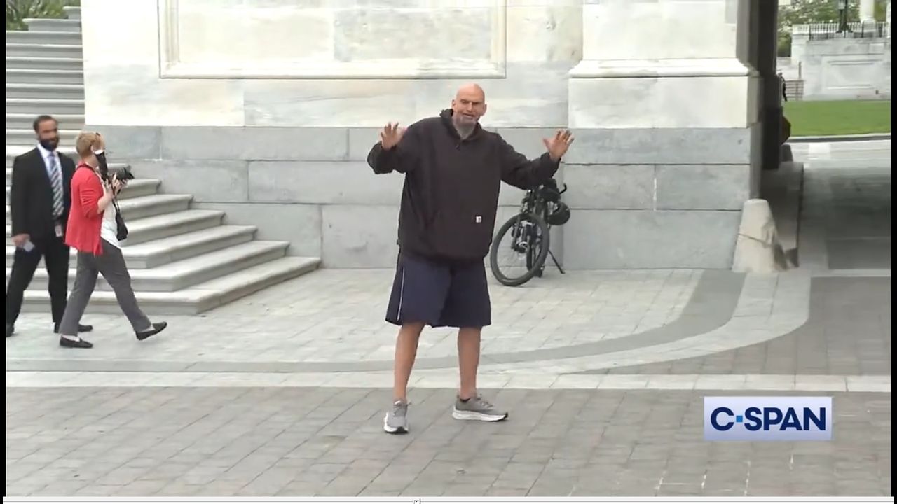 Fetterman, 53, spent two months at Walter Reed National Military Medical Center receiving treatment for clinical depression. He dressed casual as he arrived to Capitol Hill. This is the same guy who was supposedly sponsoring bills from a psych ward.