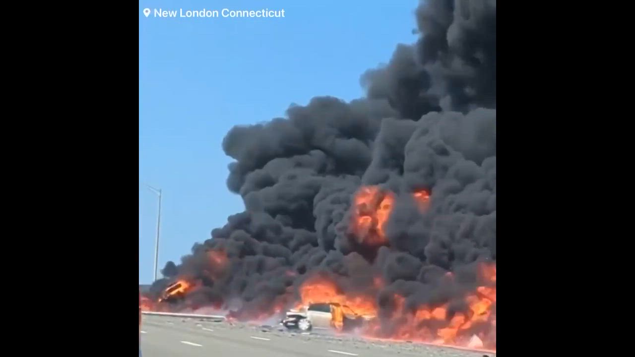 Today's Powerful Explosion of a Fuel Truck on the Golden Star Bridge in New London, Connecticut. 042123