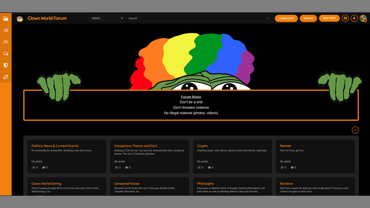 Need a place to speak your mind without being censored? Tired of having your posts removed because you mentioned certain words or phrases? In my forum it's anything goes. Check it out and let me know what you think. I appreciate all of you and want to give you a refuge from the insanity that is Clown World. Let me know what you think!