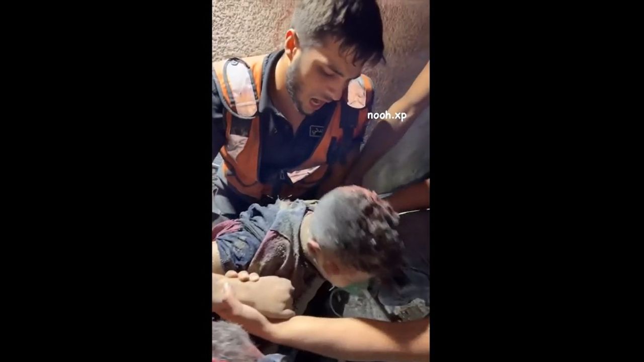 A child is recovered alive after being buried under the rubble of a house bombed by Israel in Gaza