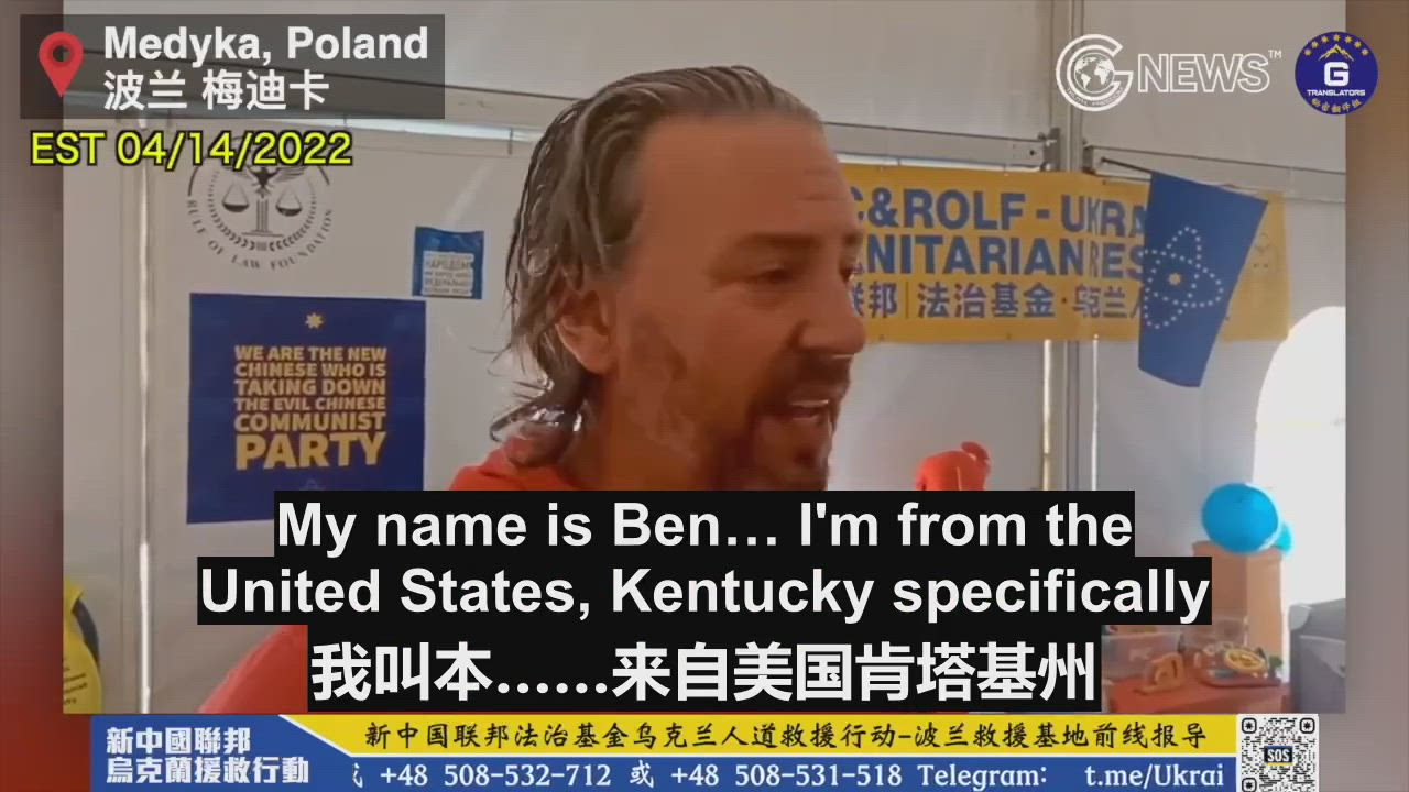【Ukraine Rescue】 04/14/22 Ben, a volunteer from the United States, says that the largest and best-equipped NFSC rescue station is the cornerstone of the Medyka center. Without the presence of the NFSC, Medyka would not be as global as it is today. He believes that it is because the New China Federation upholds humanity that the Communist Party should be eliminated; it should be a global fight because even a country as powerful and symbolic of freedom as the United States has been infiltrated by the CCP, so the whole world should come together to take down the CCP!