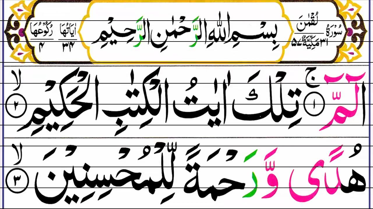 Surah Luqman Full [Surah Luqman Recitation with HD Arabic Text