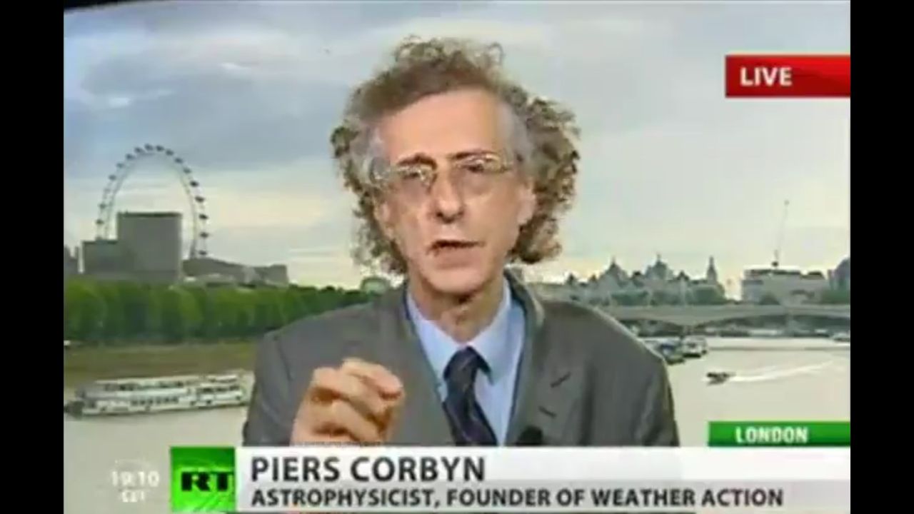 Astrophysicist and meteorologist weather expert Piers Corbyn was recently interviewed by a reporter in RT.com's Moscow studio about the unusually hot weather seen in many parts of the world this year, stating the standard corporate media line that this is a clear example of "climate change."