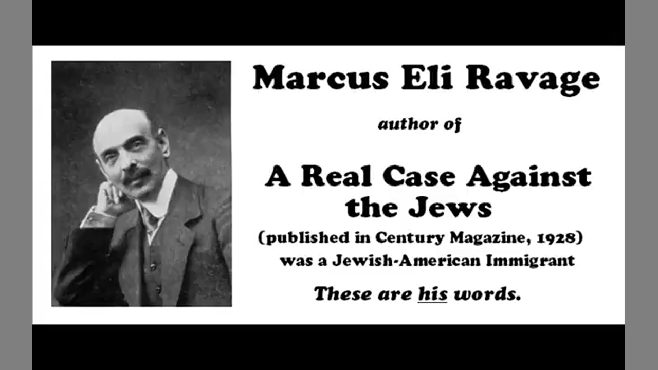 Marcus Eli Ravage was a Jewish American immigrant intellectual who wrote many books and articles, some of which include the biography of the Rothchilds family as well as Napoleon's second wife, Marie-Louise. However, a lesser known work of his is an article published in Century Magazine in 1928 called; A Real Case Against The Jews, which is odd that a Jewish person is writing an article called the real case against the jews.
