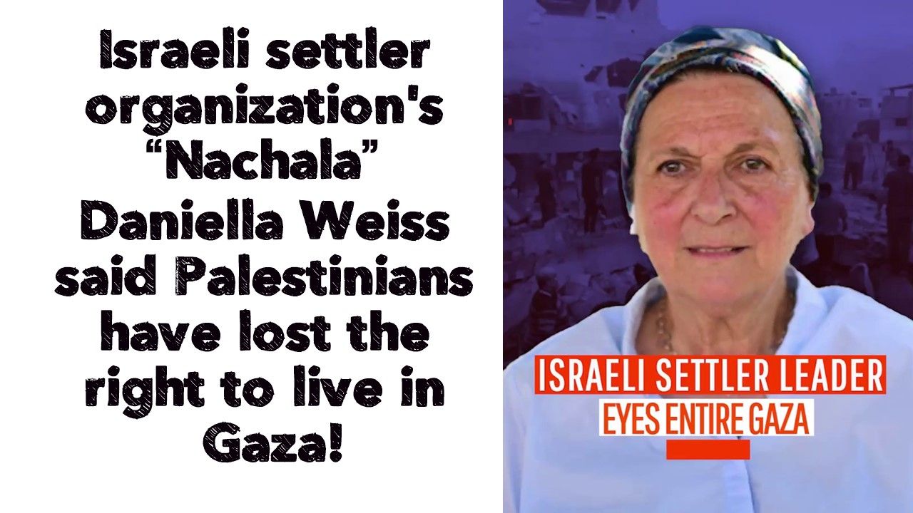 At a press conference near the besieged and war-hit Gaza Strip in the occupied Palestinian lands, founder of the Israeli settler organization “Nachala” Daniella Weiss said Palestinians have lost the right to live in Gaza!