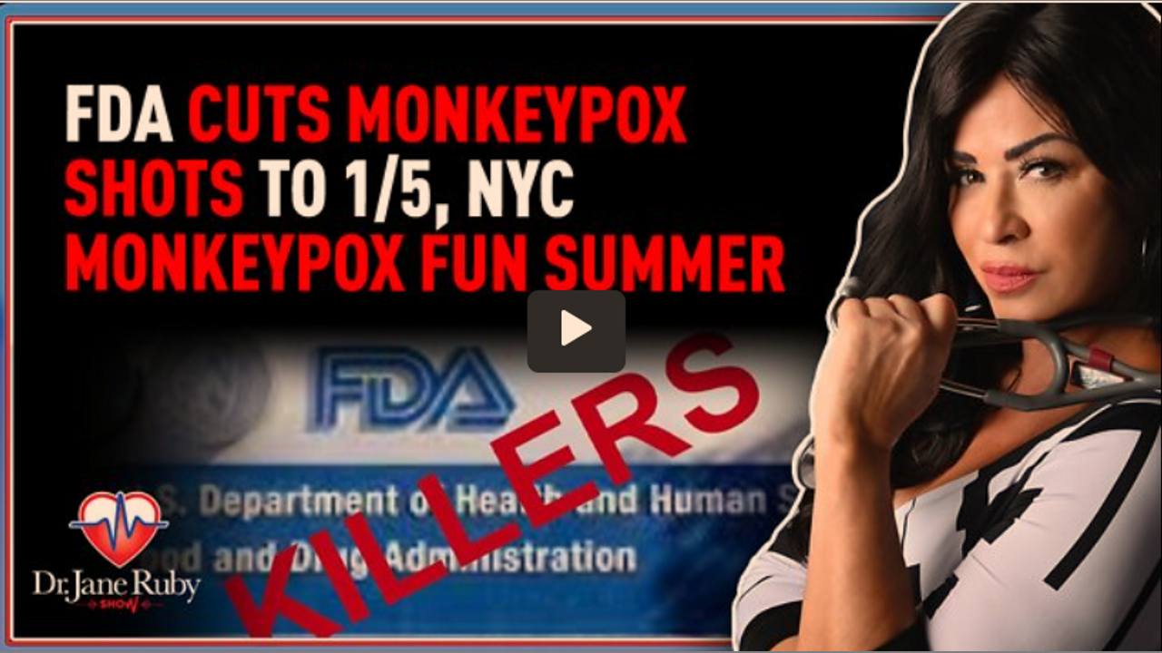 It’s an emergency….NOT! Dr Jane reveals the dangerous decisions of the FDA, the former federal agency now in the hands of the pharmaceutical industry, the FDA is changing the route of injecting Monkeypox shots that are really smallpox tested shots, resulting in diluting the doses of smallpox vaccines to 1/5 of what the companies tested in their human trials…they say it’s to make the nation’s supply stretch, as Biden is committing billions of your tax dollars to build a stockpile, for a self-limiting pox illness, diagnosed with the fake PCR test, an illness that is really Covid 19 Shot induced shingles, a condition with zero deaths; and then…behold New York City’s Ministry of Propaganda, or rather Health, is using all the classic fearmongering tactics that brought us the Covid 19 scam and the show wraps with a clean food expert to talk change…change in health & change in habits. This is the Dr. Jane Ruby Show and you’re about to enter Truth In Medicine.