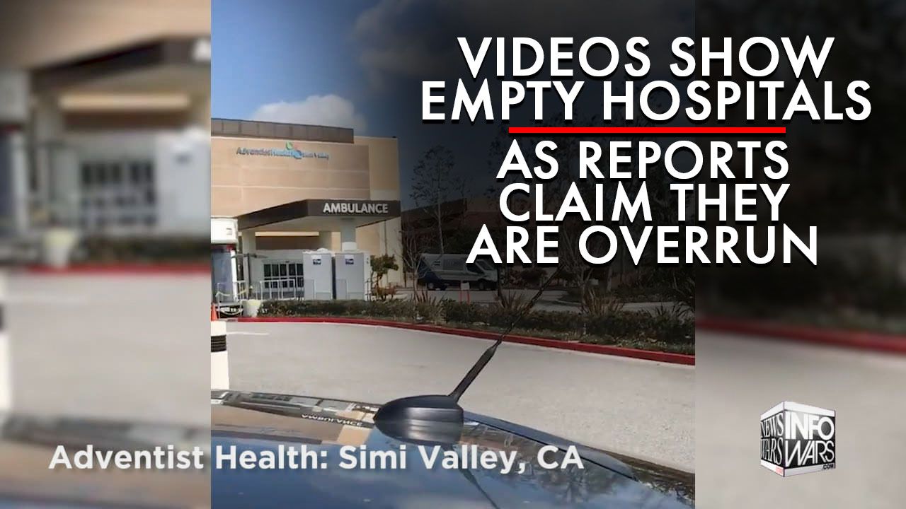 Alex Jones breaks down the numerous videos citizen journalists took of their local empty hospitals as the MSM narrative is that they are overrun.