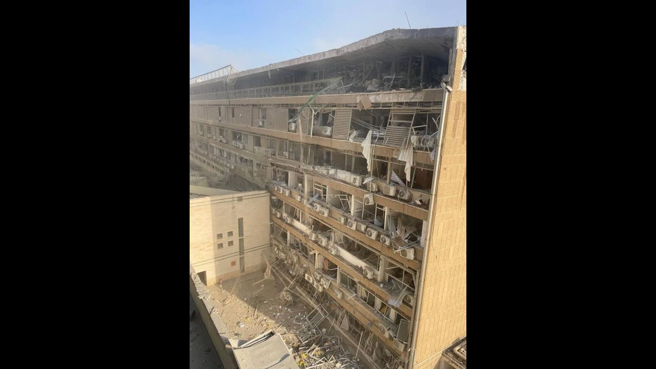 Massive damage to Soroka Hospital in Beersheba following the impact of an Iranian ballistic missile.