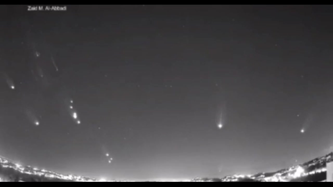 Iranian ballistic missiles fly over Jordan during Operation True Promise 2 on 10/01/2024.
