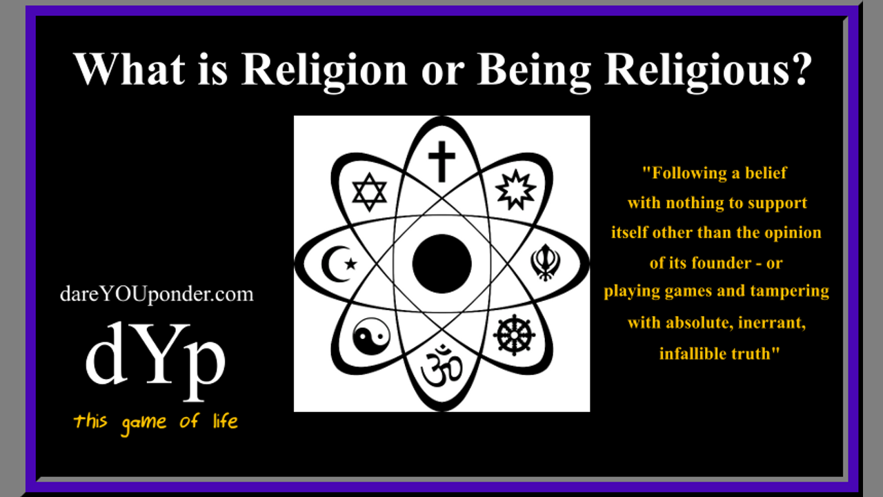 WHAT IS RELIGION or BEING RELIGIOUS? It is following a belief with nothing to support itself other than the opinion or its founder - OR - playing games and tampering with absolute, inerrant, and infallible truth - EXPLAINED WITHOUT THE FLUFF