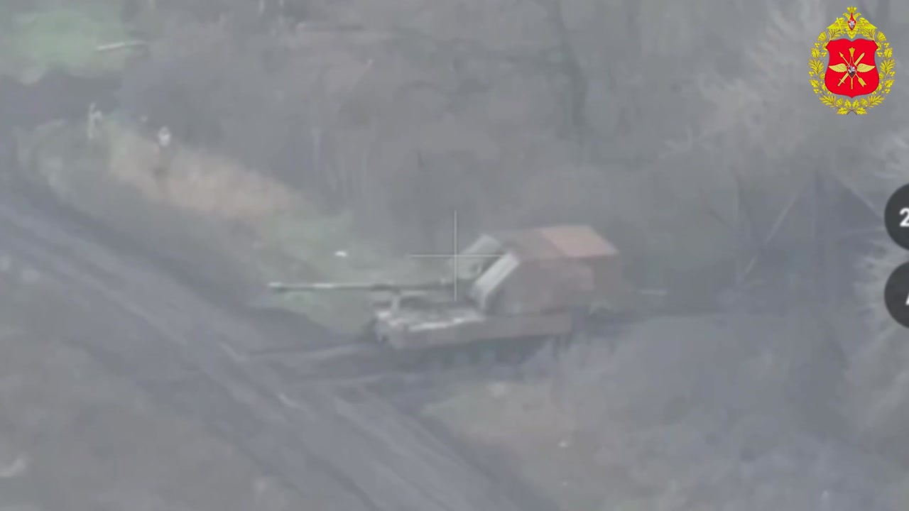 00:00 The Yug Group of Forces' UAV teams as part of the Volki volunteer brigade hit a Krab self-propelled artillery system in Kramatorsk-Slavyansk direction.