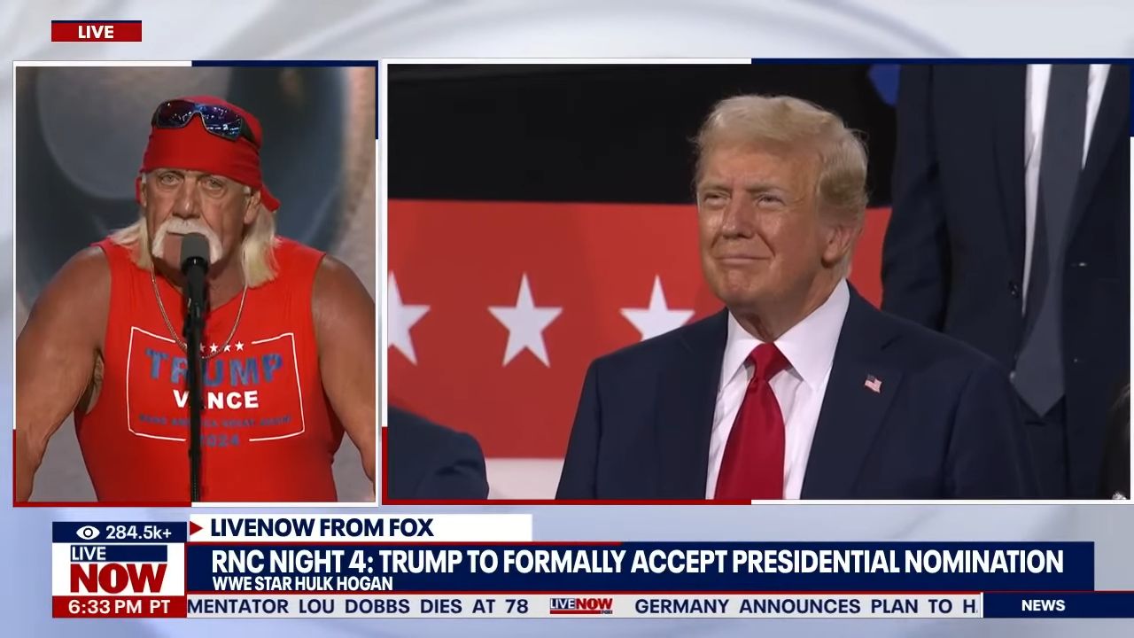 Professional entertainer and wrestler Hulk Hogan took the stage at Day 4 of the Republican National Convention on Thursday. Hogan called former President Trump a "real American hero." Trump has been seen wearing a bandage on his right ear following an assassination attempt during a weekend rally in Butler, Pennsylvania. Trump's running mate, Ohio Senator JD Vance, made his first speech to the RNC as a vice presidential candidate on Wednesday night. This comes ahead of a speech by Trump on Thursday when he's slated to accept the GOP presidential nomination.
