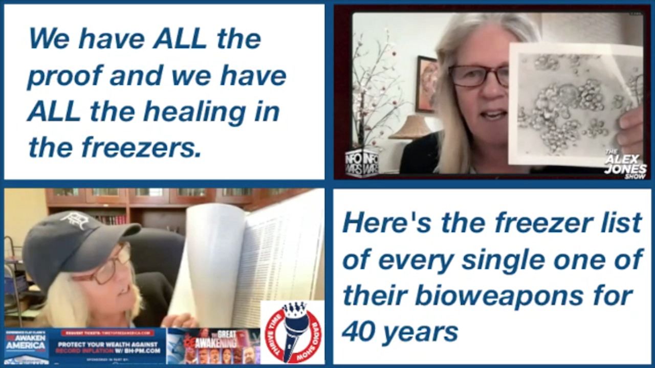 Dr Judy Mikovits: This piece of paper here says Leidos Biomedical. And it has the shipment. You know the last chapter of Plague of Corruption. Maybe there's one last story I should tell you that I told Bobby Kennedy in 2019 in October. Oh, wait a minute. Here's the freezer list of every single one of their bioweapons for 40 years. Do you want the proof in your hand, in Trump's hand and let him have every bit of this. We'll show you where the cures are. They're right here. Every word we say this. I'll bring them with me and give them to General Flynn.