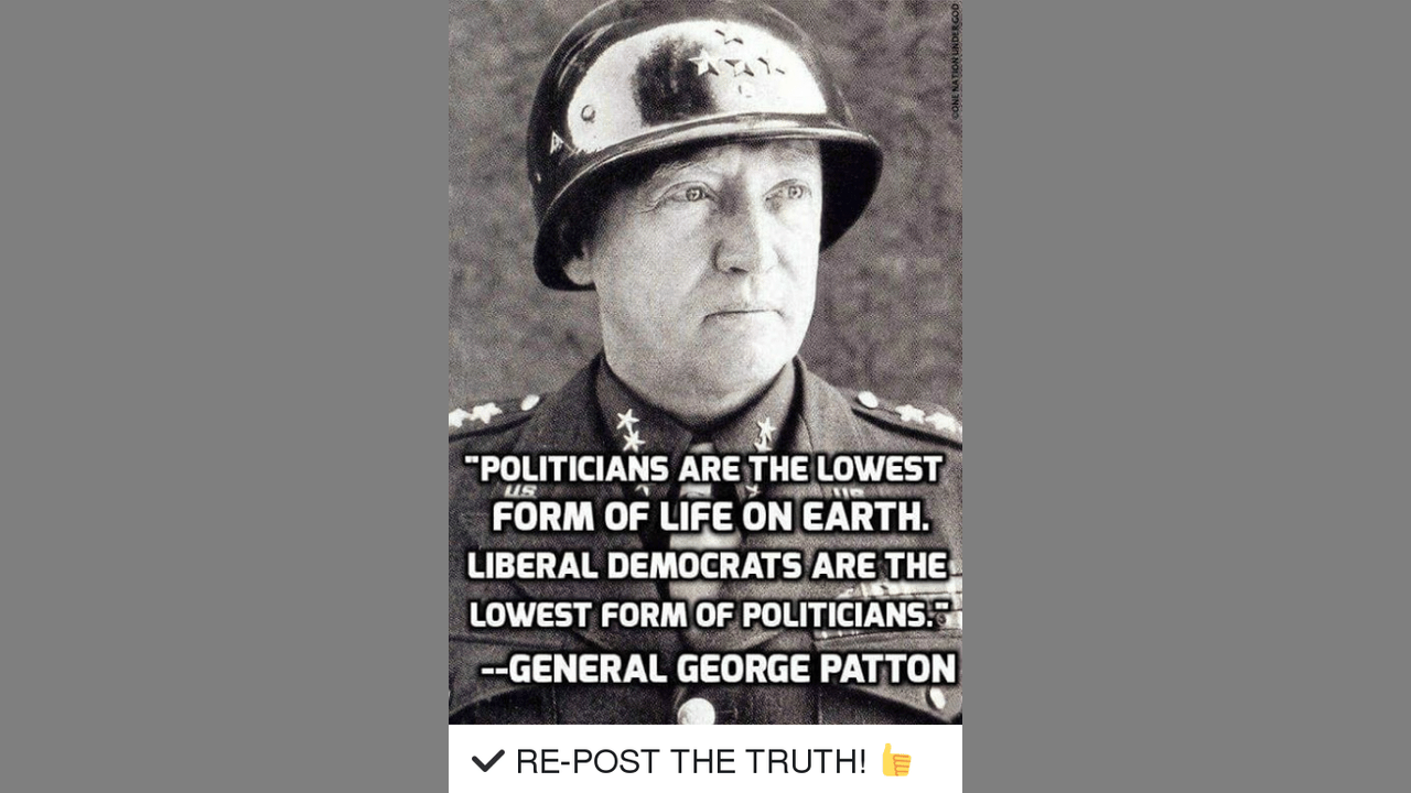 George Patton said, “Politicians are the lowest form of life on earth. Liberal Democrats are the lower form of politicians.”