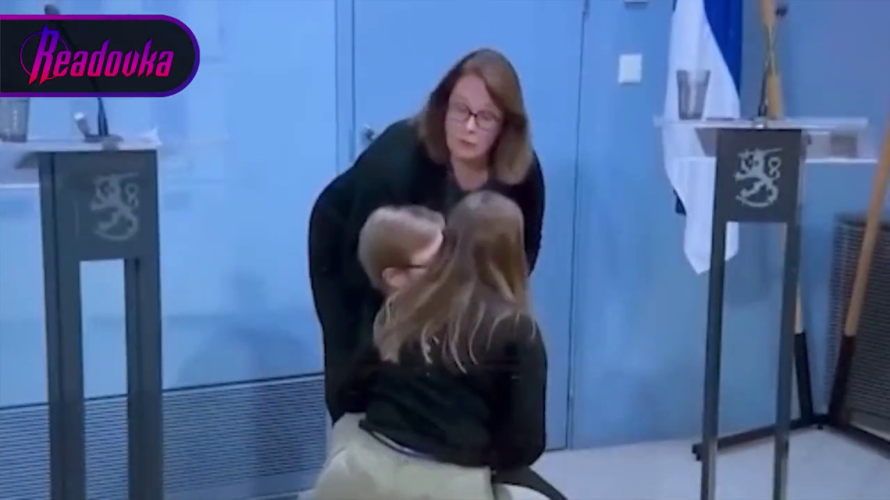 She was standing at the end of a line of podiums out of view of the cameras at the time she fell, but the cameras suddenly turned and caught the moment two of her colleagues helped her back to her feet. There has been no word yet about what caused Ms Mikkonen to pass out.