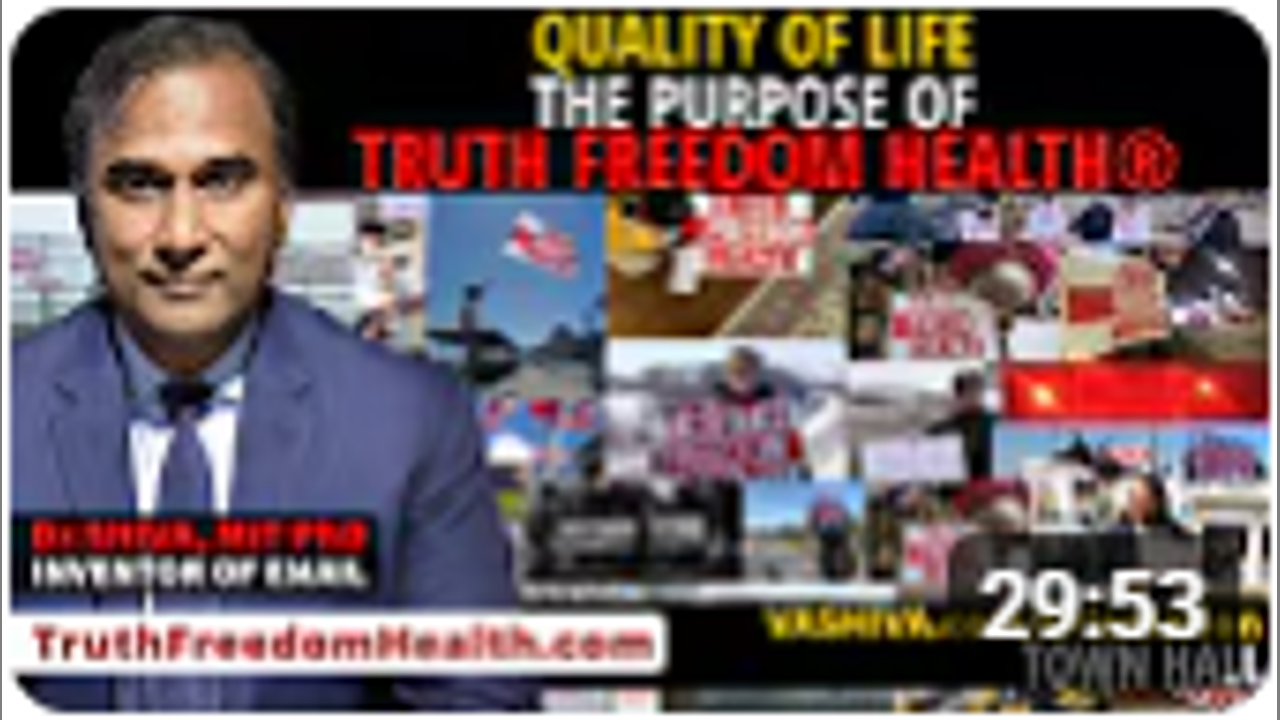 In this presentation, Dr. SHIVA Ayyadurai, MIT PhD, Inventor of Email and Independent Candidate for President of the United States, discusses what is the purpose of life and how we achieve the quality of life we all need and deserve, the true purpose of the incredible global community of Truth Freedom Health®. Full Blog post: https://vashiva.com/dr-shiva-live-qua...