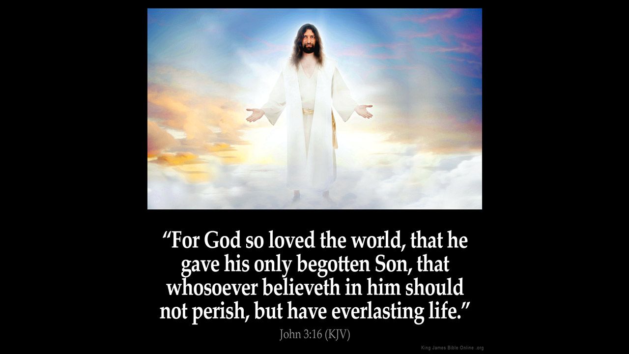 (16) For God so loved the world, that he gave his only begotten Son, that whosoever believeth in him should not perish, but have everlasting life.