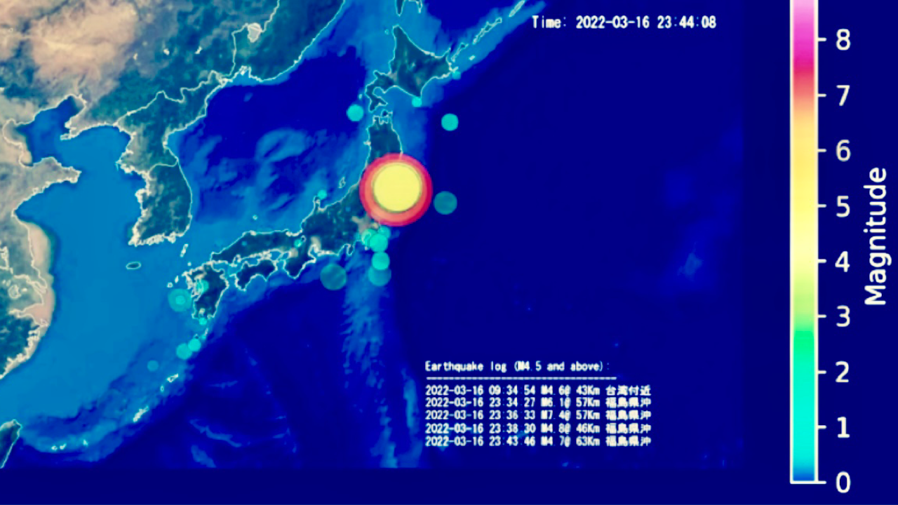 Japanese Earthquake Visualization Animation: Fukushima 2022