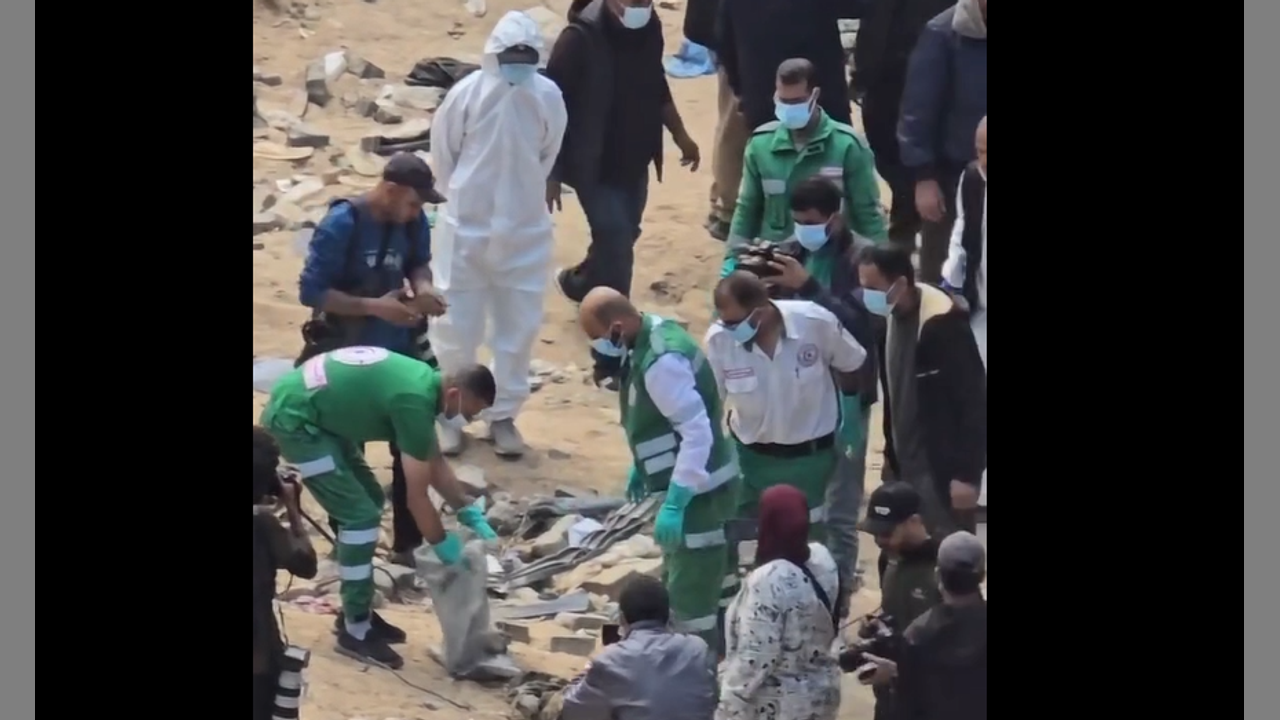 Cynthia... I think many of the decomposed bodies are the 100's of dead that were previously buried in the courtyard cemetery. They were bulldozed by Israel a few days ago before the IDF left the area, and now must be reburied and the bodies are now unknown whom they are.