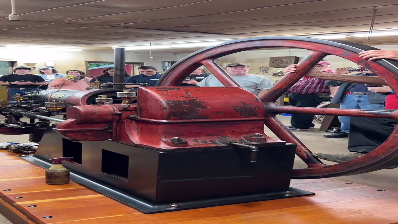 Jerry Toews firing up an Otto engine from 1895. Not an otto-cycle engine, although it is that too, but an actual engine sold by Nicolaus Otto, who designed the first successful four-stroke engines.