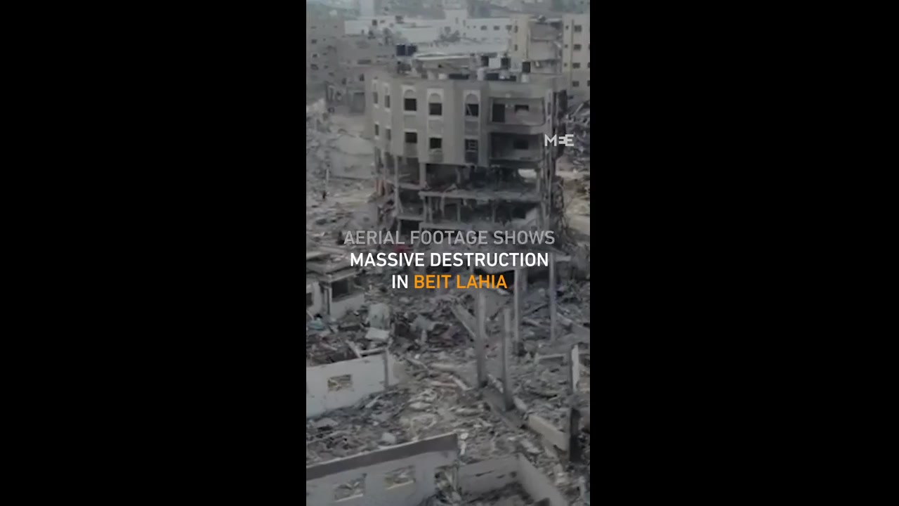 Aerial footage shows the extent of destruction in Beit Lahia, located in the northern Gaza Strip after its devastation by Israeli forces