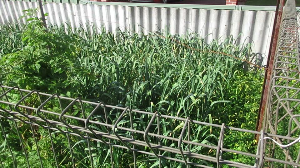 Garlic crop thriving in urban front yard MVI_3302