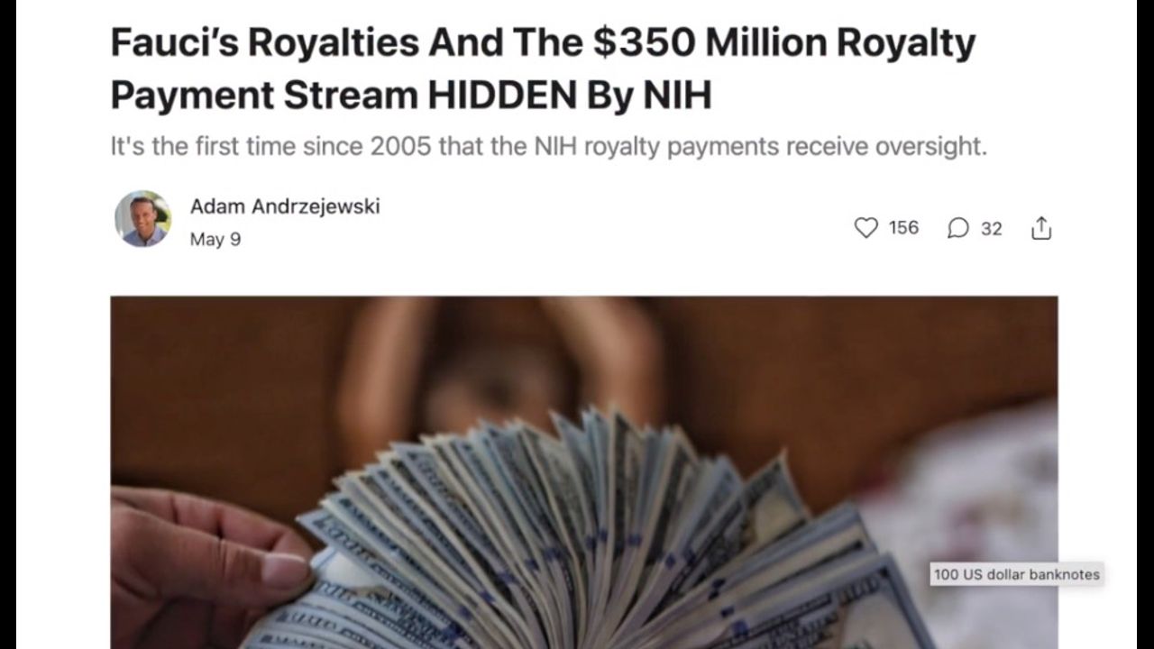 Fauci/NIH Paid $350 Million In Royalties -- NIH Hides the Details