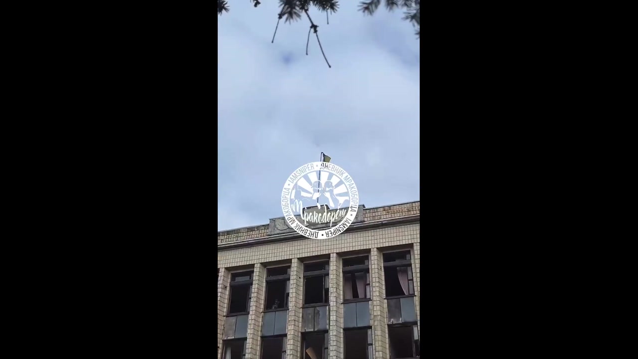 Russian soldiers remove the Ukrainian flag from the Selydovo administration building.