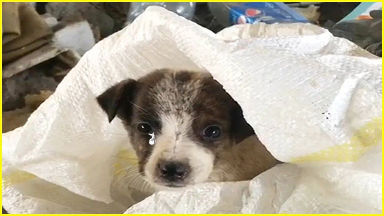In an old sack, a puppy was discovered. The dog's faint cry was noticed by passersby! Luck is the lucky puppy approached by the rescue team! He's small, skinny and weak! I don't know who did this, but the dog seems a bit scared!