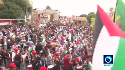 Thousands of protesters have taken to the streets in the outskirts of the Syrian capital, Damascus, to condemn the Israeli aggression on Gaza and show support for Palestinians.