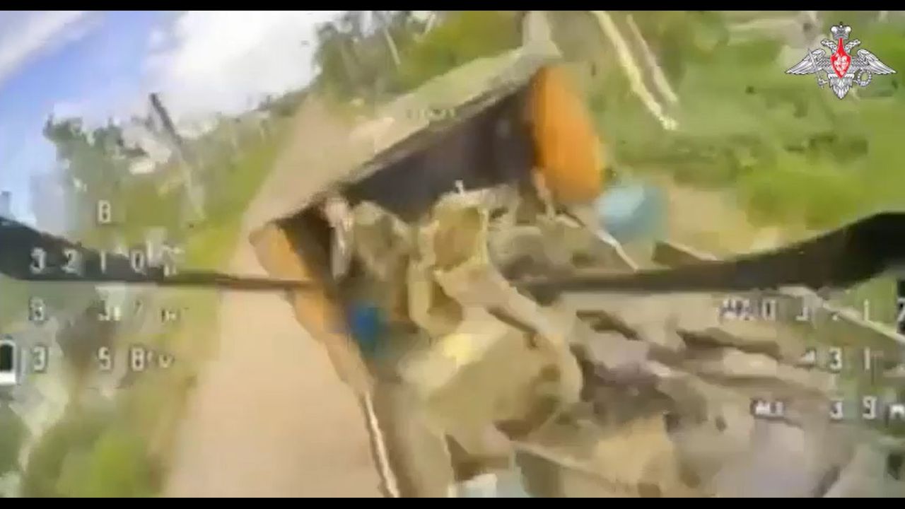 The Russian Ministry of Defense showed a clip of direct Drone strikes on UKR Ammo Trucks