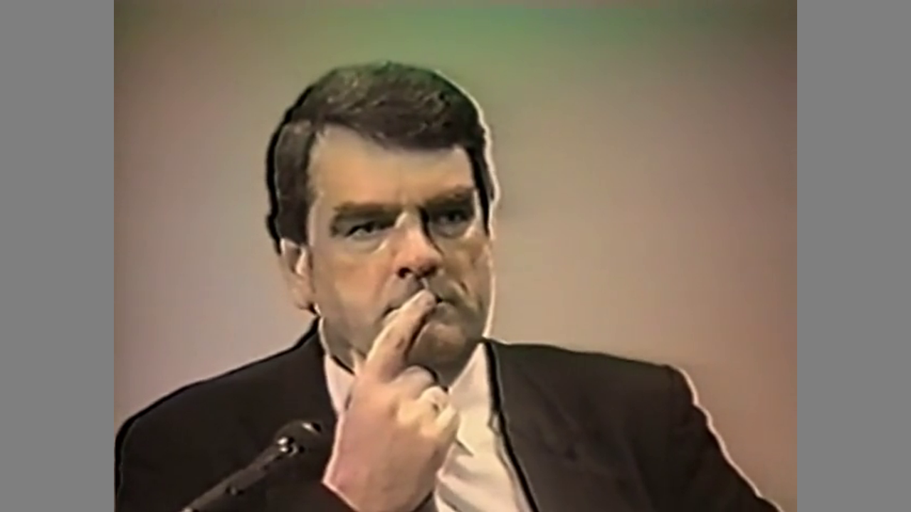 David Irving speaking in Durban, South Africa on March 5, 1986.
