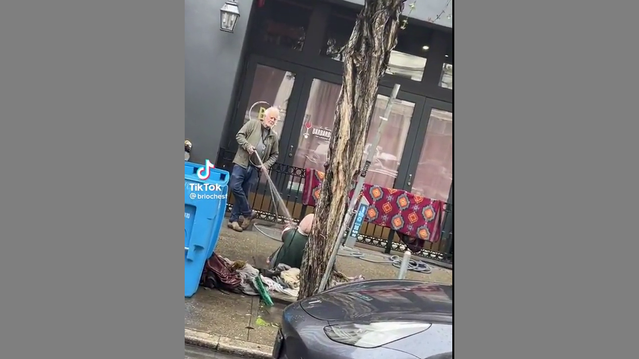 Commercial owner hoses down a homeless woman to get her to move on .