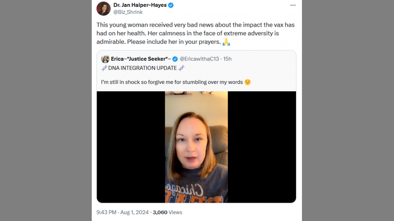 This young woman received very bad news about the impact the vax has had on her health. Her calmness in the face of extreme adversity is admirable. Please include her in your prayers. 🙏